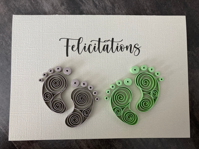 Une petite carte de naissance en quilling… pour fille, pour garçon et pour jumeaux